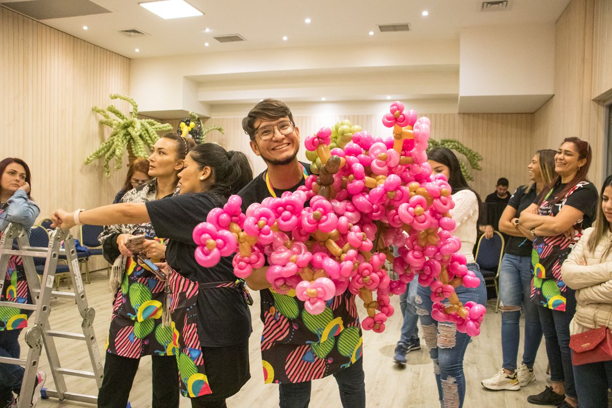 It was an Encanto styled party. Gemar Ambassador Yulys Charles, accompanied by our talented Gemar Instructor Alisson Vasconcelos and special guest expert Fábio Raian, created decorations which can help you to imagine yourself like a hero of this famous film. Because there were real jungles made from balloons. And, of course, our Queen of Flowers, Yulys Charles, showed her best techniques so the study class was full of colourful flowers.