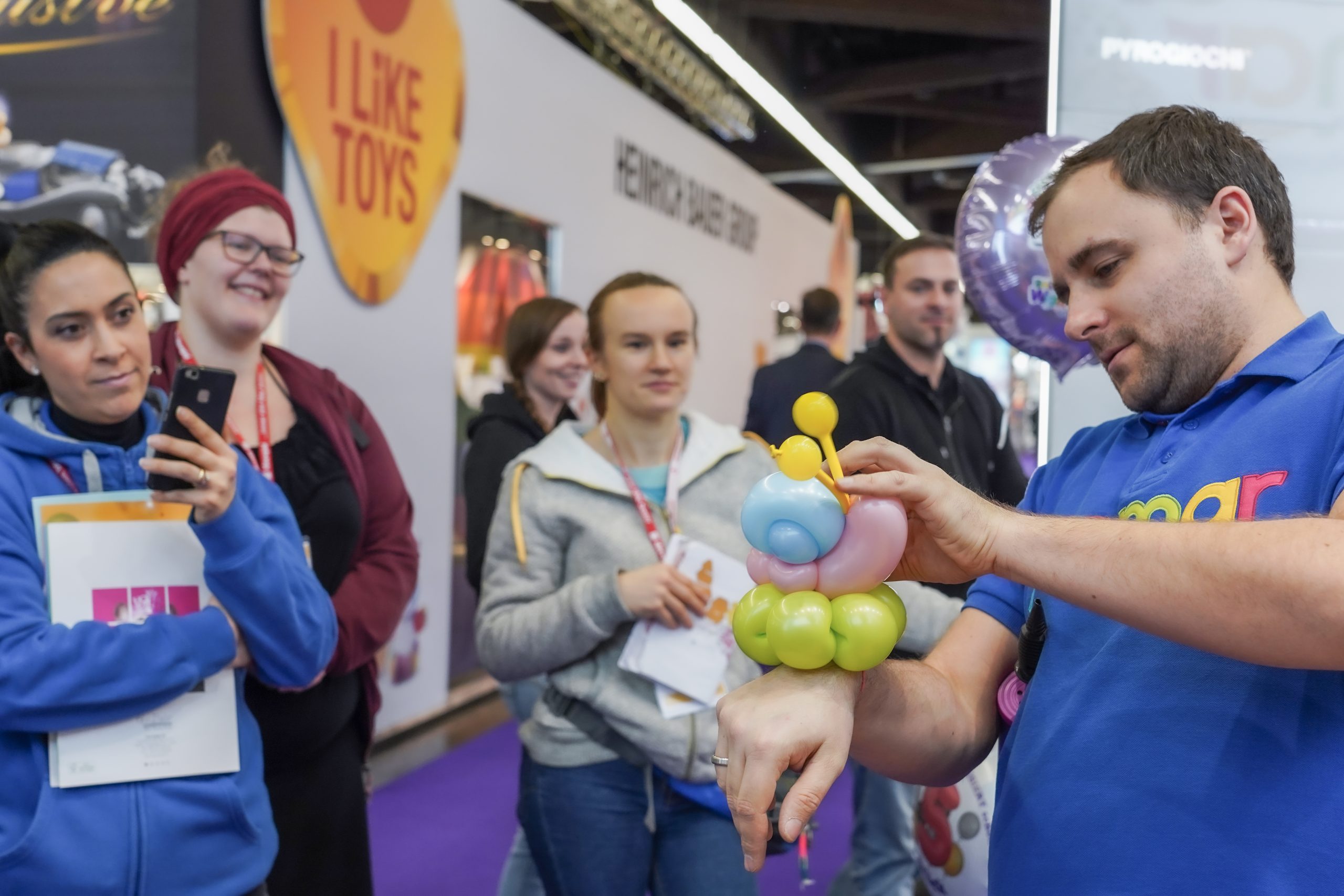 One of our favourite things about the annual ToyFair is the opportunity we have to share the wonderful world of balloon sculpture with a wide range of people. This year our Masters & Ambassador had no fewer than six appearances on the Showtime stage, where they entertained and educated their audiences in equal measure. Roberta created delicate and sophisticated fantasy flowers and Christian demonstrated an under the sea themed centerpiece complete with cheeky jellyfish. On Saturday Gergo reminded over 300 viewers live on Instagram that summer was just around the corner, as he created mouthwatering balloon ice creams and sweets.