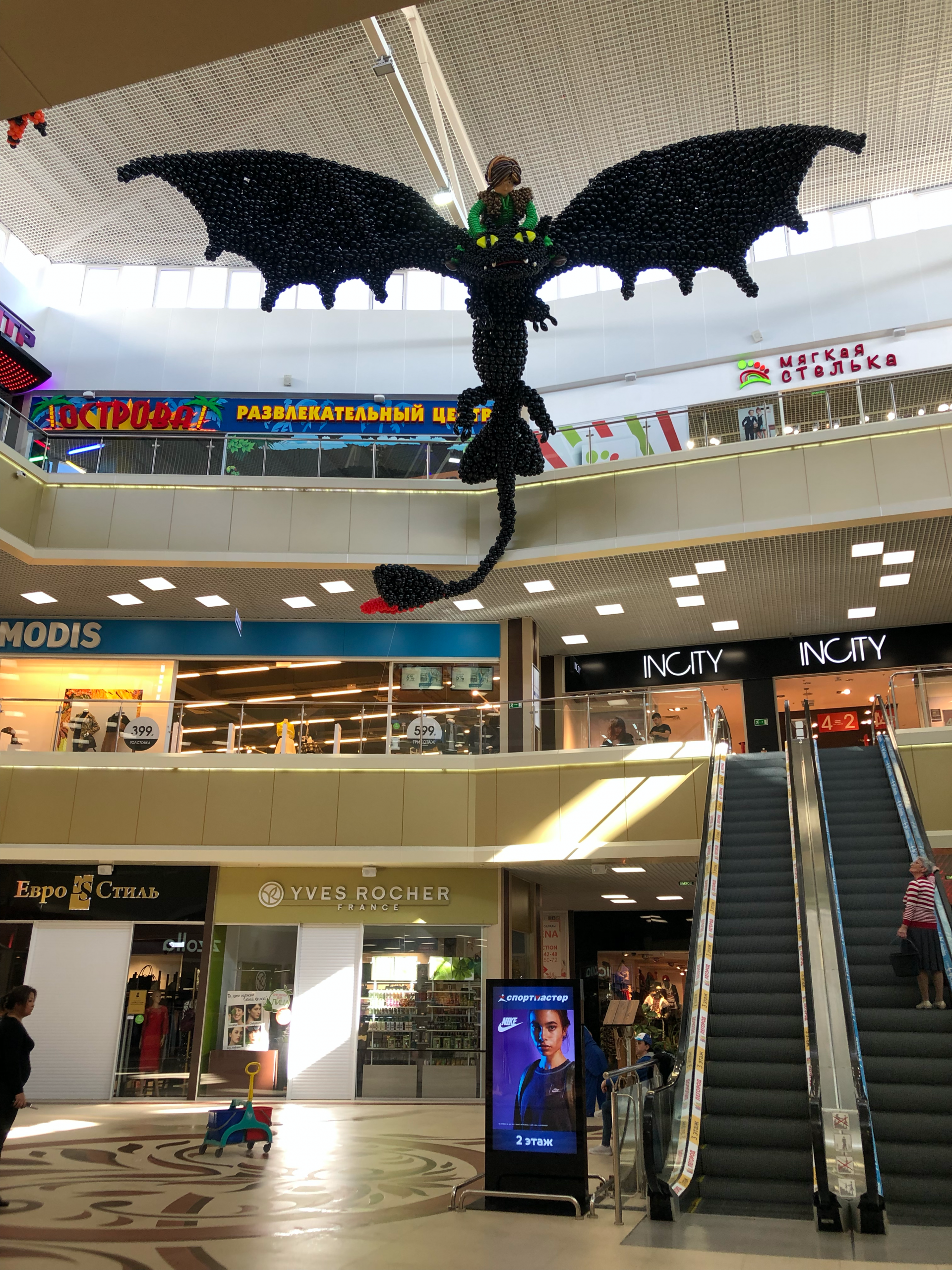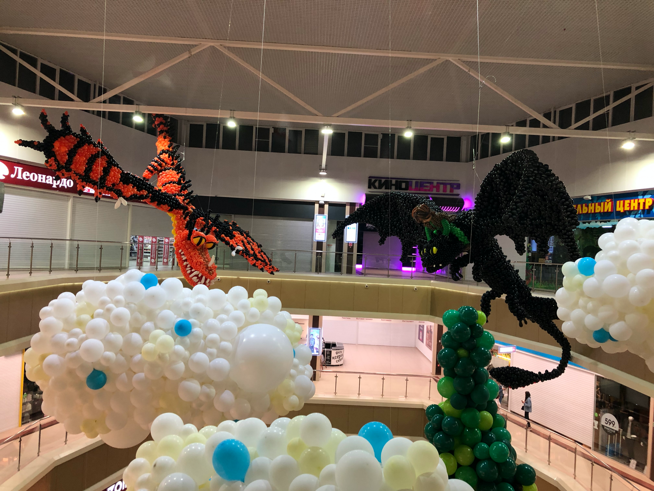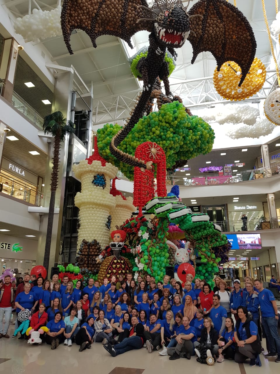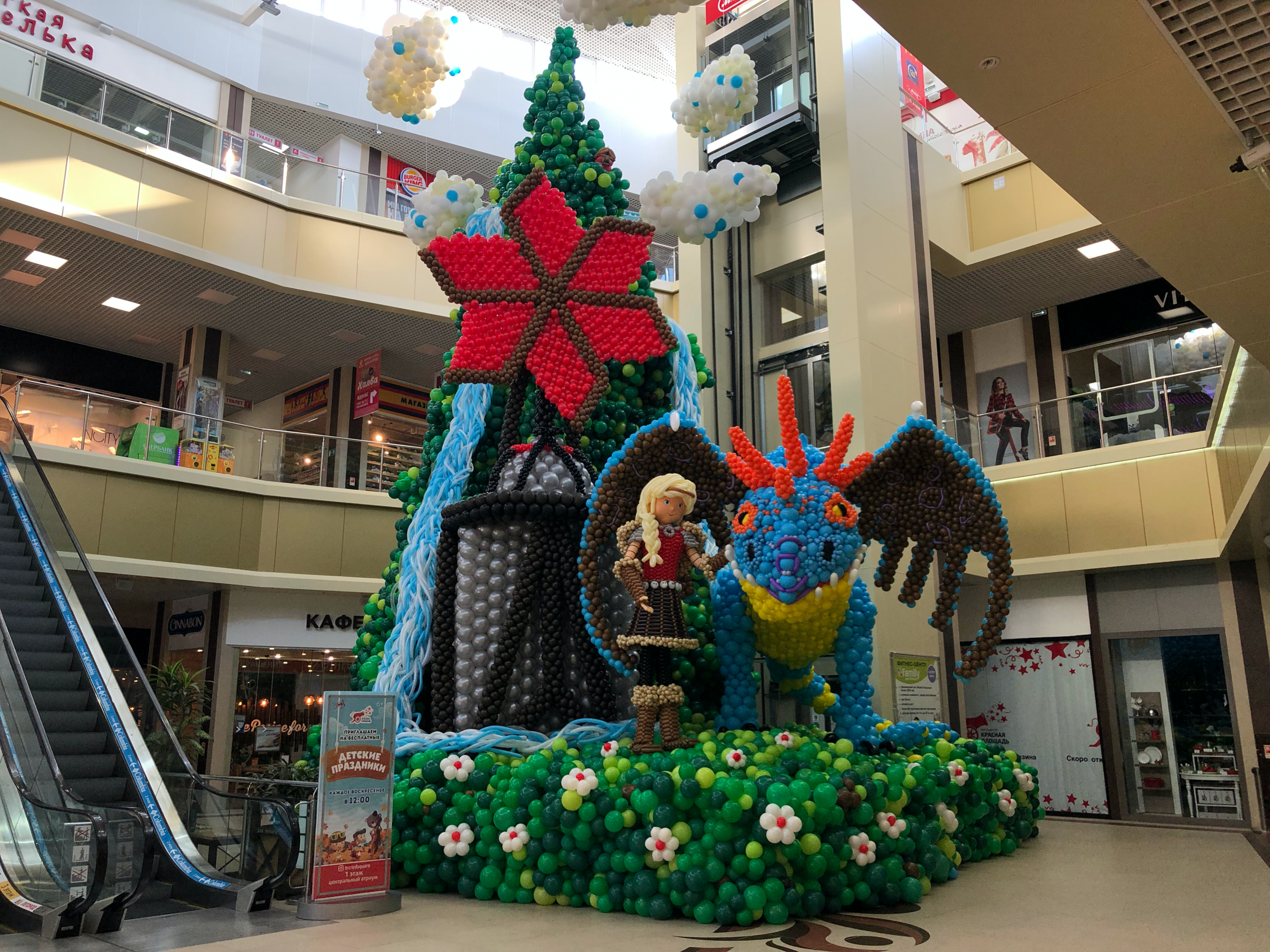 Just as we thought we had seen the best that balloon sculptures could offer, the team proved us wrong. Shoppers in the Armavir town mall were treated to the breathtaking sight of larger than life dragons swooping and soaring through the sky in a stunning scene from “How to Train Your Dragon.” The sheer size of this multi-storey space meant the team could really let their imagination take flight and so they did, creating something that defies all expectations and set the lucky shoppers hearts soaring among the (balloon) clouds.