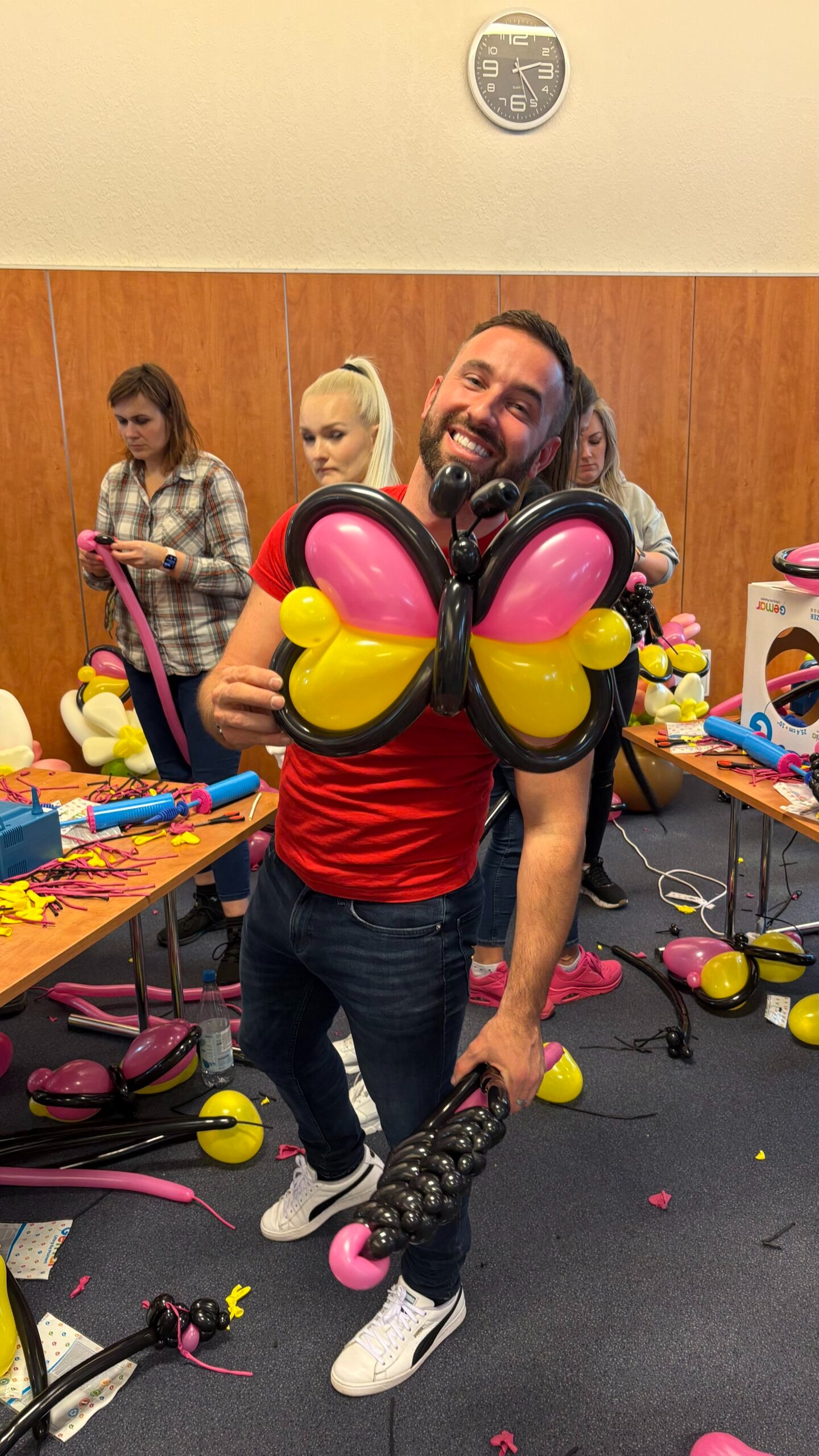 One of the most fun and unexpected sessions was led by Tomas, who taught participants how to create a wearable chicken costume entirely made from G-Link balloons. This hands-on activity caught everyone’s attention with its originality and playful nature. Participants had the opportunity to get creative and explore new ways to use balloons—not just for decorations, but also for wearable art.