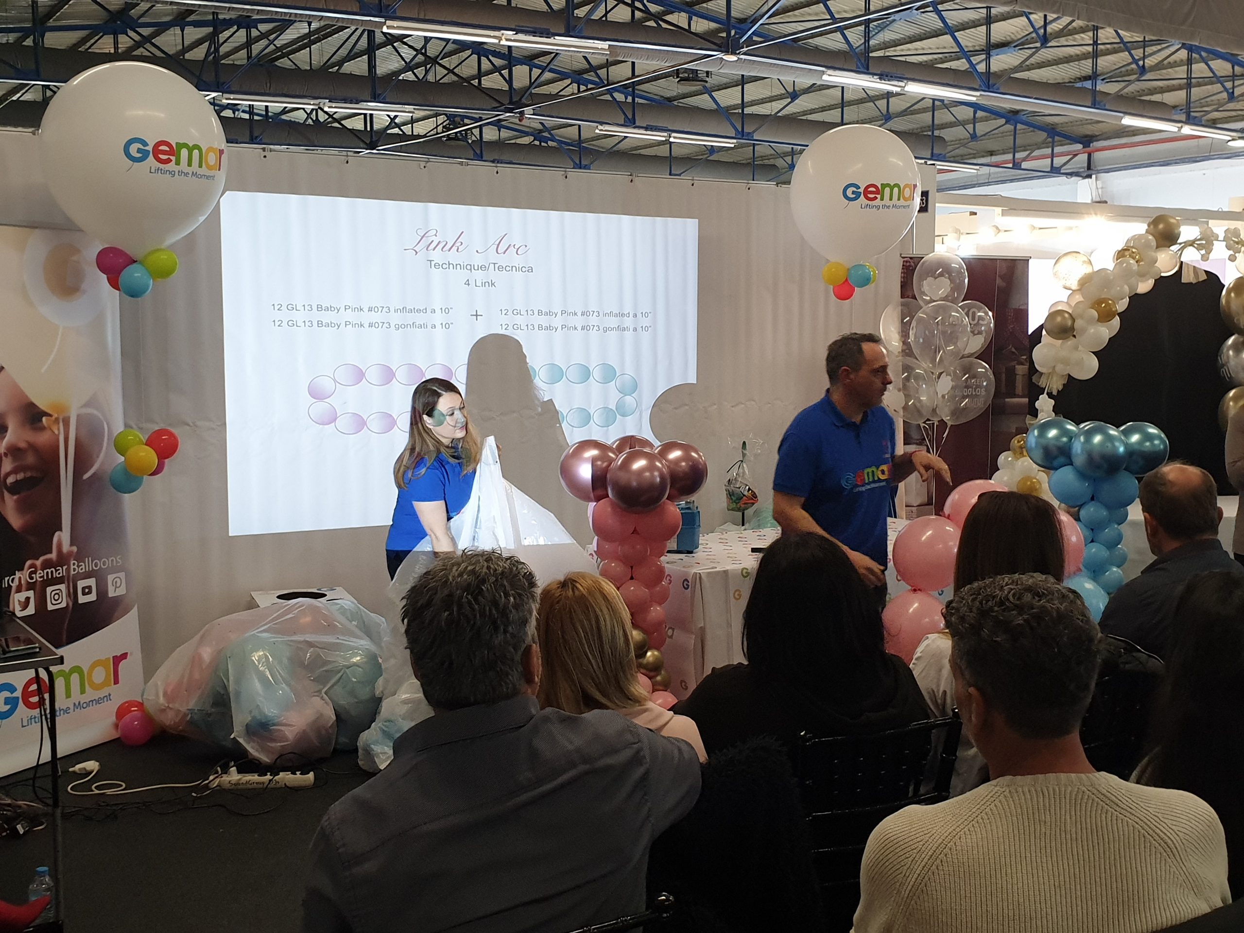 Roberta and Vincenzo joined forces to decorate the Gemar® stand with no fewer than six amazing balloon sculptures. Roberta’s stunning forest themed selfie frame provided the perfect photo opportunity, with a beautiful tree alongside the frame itself. Vincenzo was not to be outdone however and his gender reveal arch reached high overhead, capturing the attention of visitors from far across the hall. Weddings, baptisms and parties were all represented, showcasing how versatile balloons are. They can be elegant, understated, flamboyant or full of fun – whatever suits the occasion.