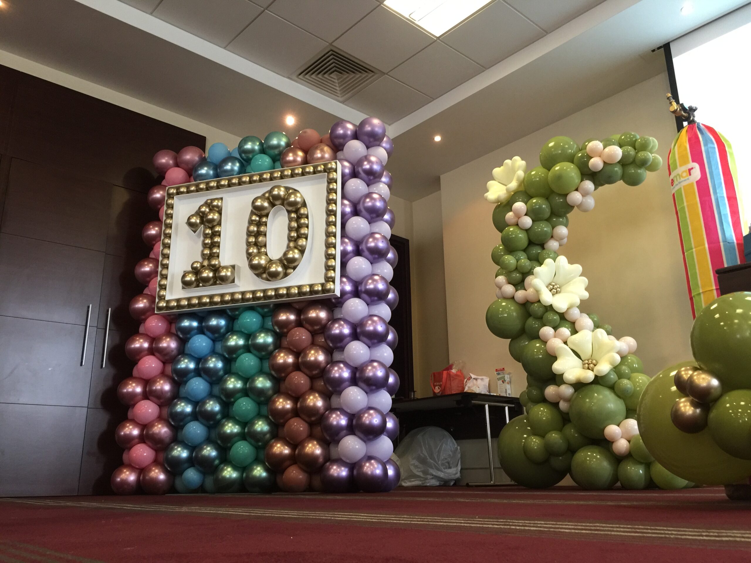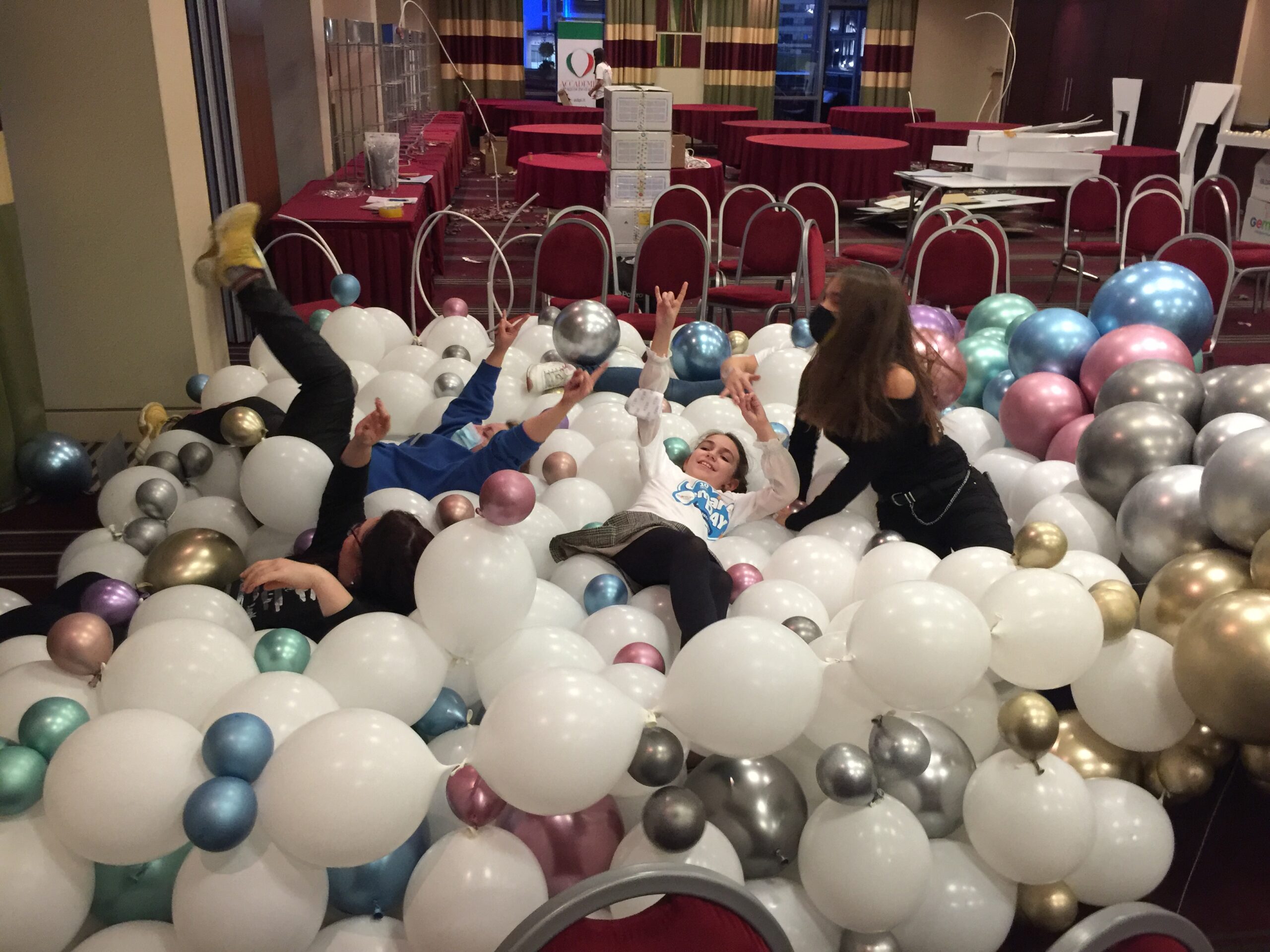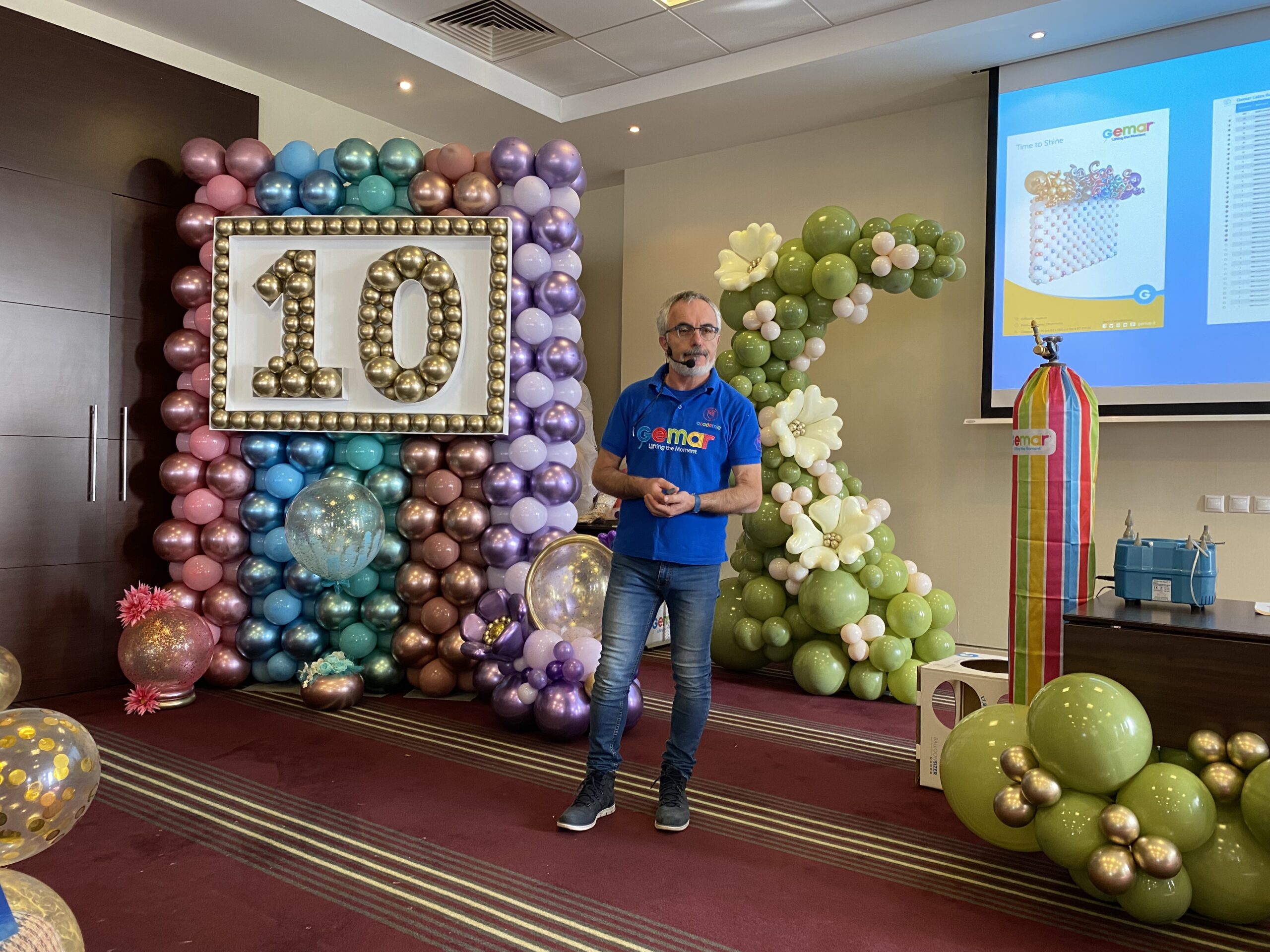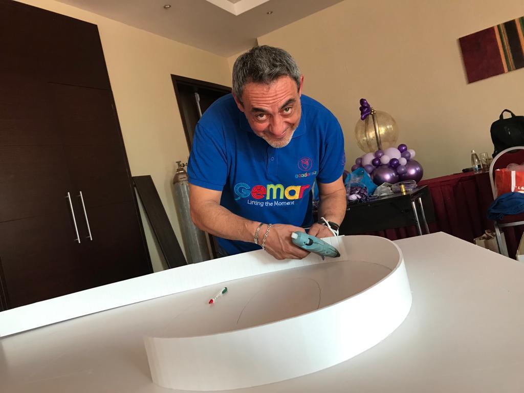 This year Roberta, Claudio and Vincenzo had a blast sharing their passion for balloon art with an eager audience. Unfortunately, due to a positive covid test at the last minute, several people had to pull out so we were a reduced number, but the 70 people who did attend made the most of it. Together we explored foam board, created a stunning balloon wall with a rainbow of Shiny colours, experimented with adding paint and confetti to balloons and discovered the newest Gemar colours – Olive Green and Misty Rose.