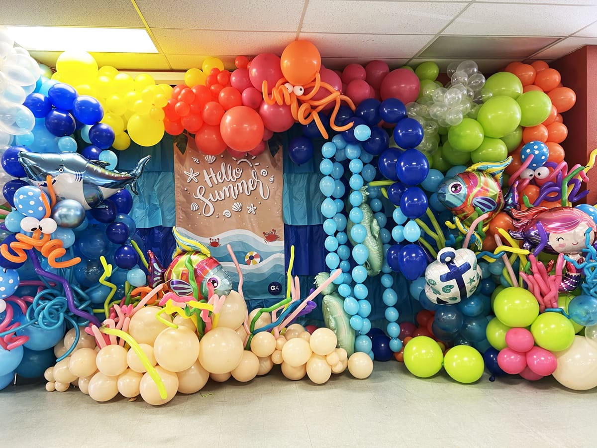 Then it was the students’ turn to try their hand at being balloon artists. They worked in groups and took turns regularly. The overall result was amazing! The students had a lot of fun with this activity, especially when they could admire their final work at the end of the workshop.