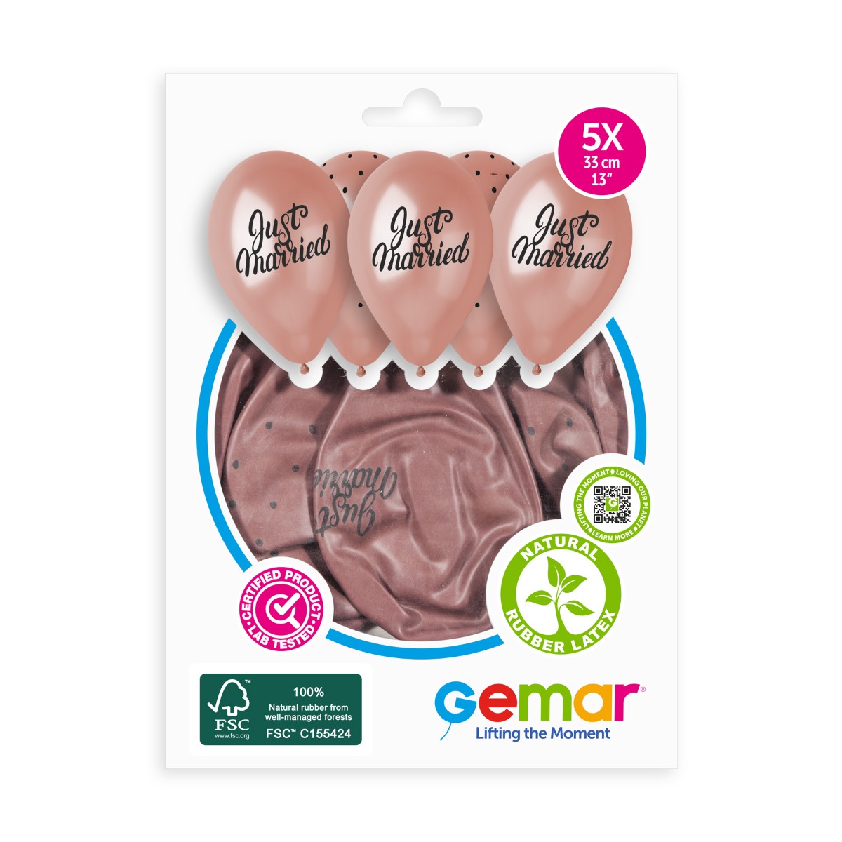 100% FSC-Certified NRL Balloons Just married & Chic dots Black