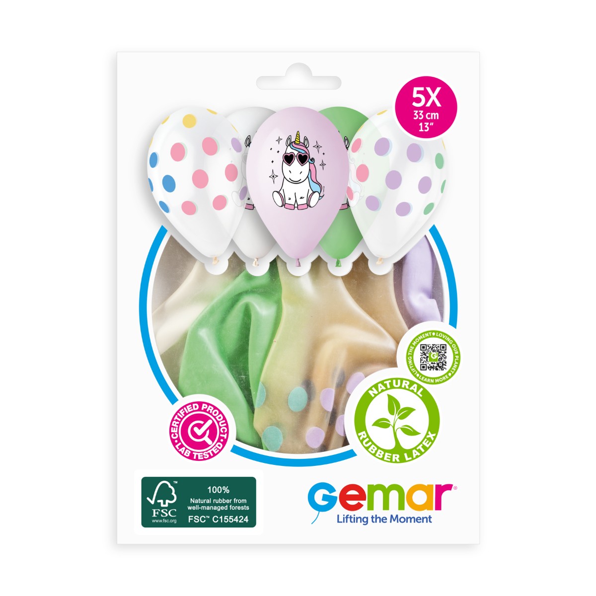 100% FSC-Certified NRL Balloons Unicorn Star & Polka Dots Multicolour