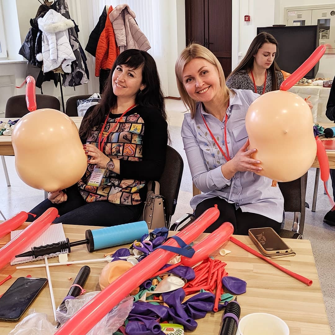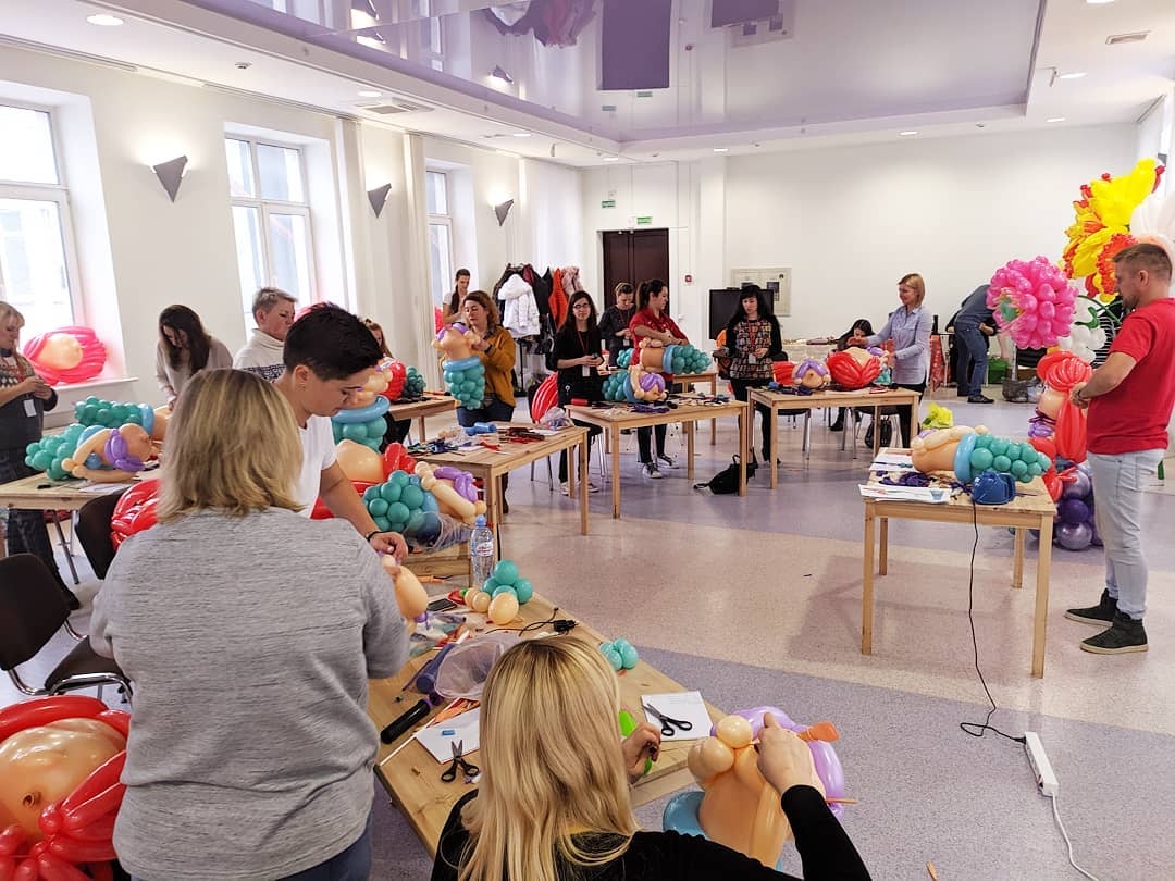 The workshop was organised by SHARTE Belarus and YARCHEBEL. It was a fantastic opportunity for 19 participants to gather from 13 different cities in Belarus, all of them eager to learn more about balloon art from the talented instructors, Anatoly and Sergey Shevchenko.