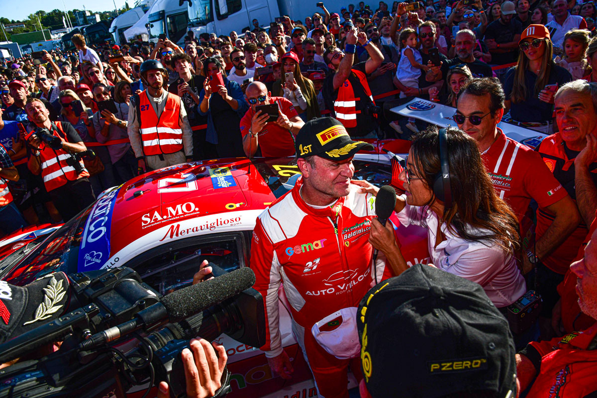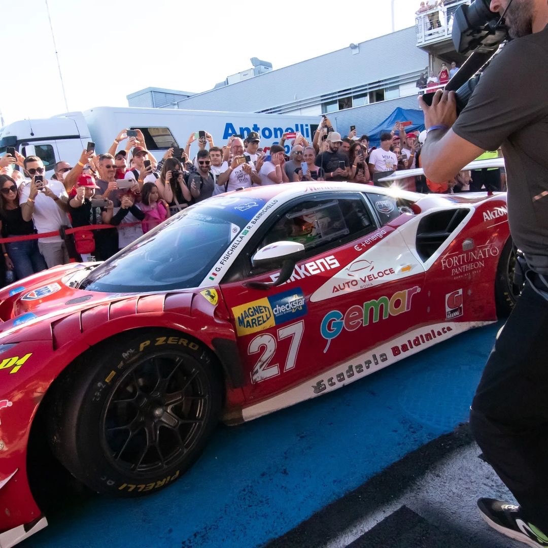 Giancarlo Fisichella and Rubens Barrichello made their debut this season at the Vallelunga circuit in the best possible way, bringing the Scuderia Baldini Ferrari 488 to victory.