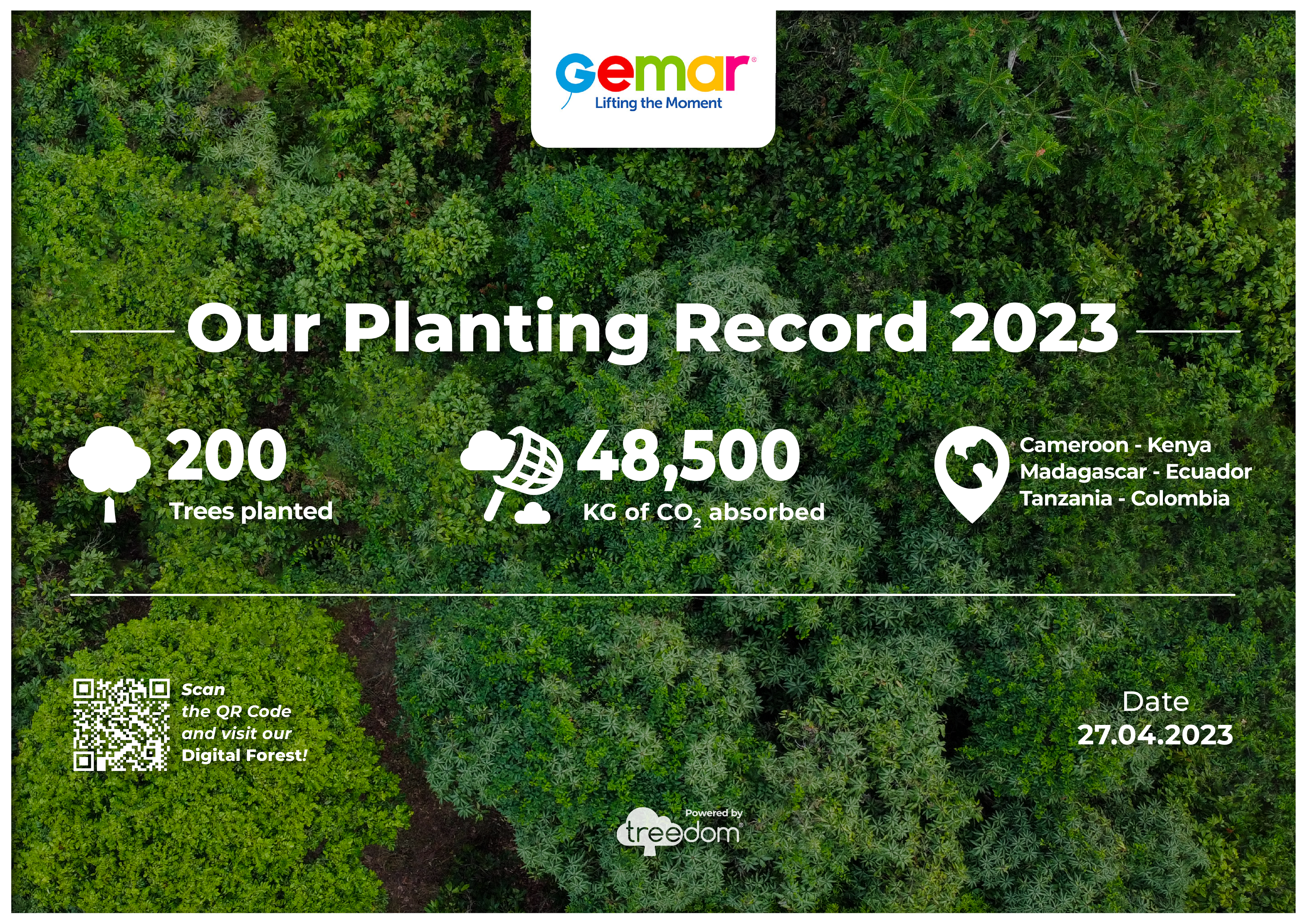 That’s why we’re delighted to share with you our Gemar family forest with 200 planted trees in different areas of the globe, which absorbed a total of total 48,500 kg of carbon dioxide.